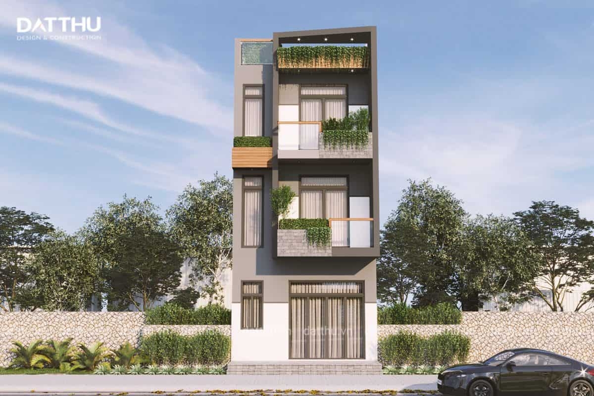 Với đặc biệt là dạng khối hình hộp chồng lên nhau và được kiềng cố bằng kết cấu bê tông cốt thép cứng cáp. Nên thiết kế nhà mặt phố cho phép đón chiều cao để bù vào chiều rộng của lô đât. Đây là biện pháp nâng cao kích thước hữu hiệu để tối ưu môi trường sống và giúp mặt tiền căn nhà tương tác nhiều với môi trường tự nhiên.
